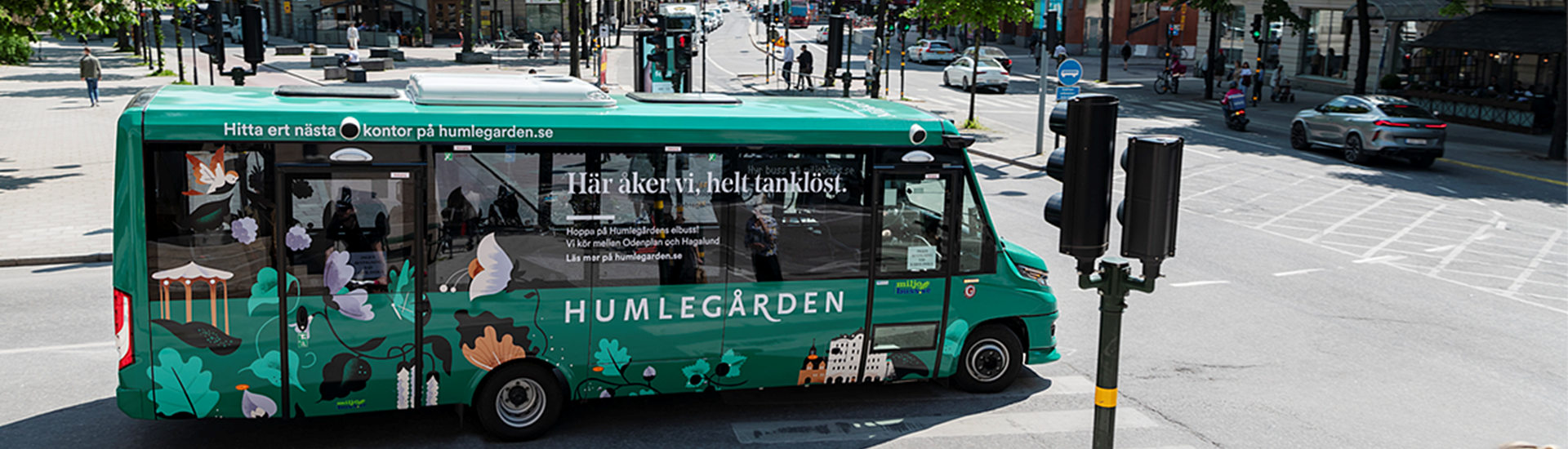 Sedan flera år erbjuder vi våra kunder i Hagalunds arbetsplatsområde en utökning av kollektivtrafiken i form av en klimatsmart elbuss.