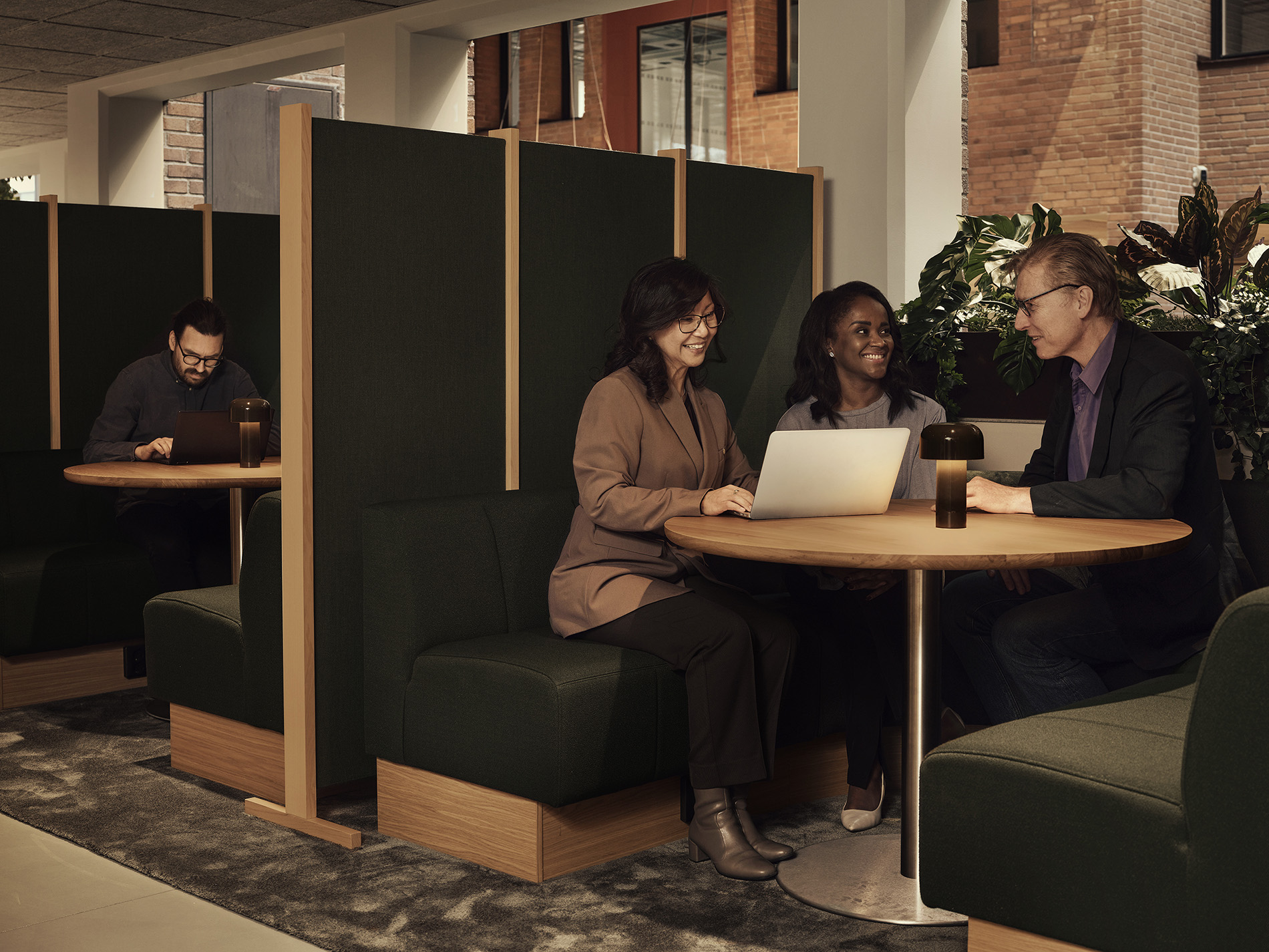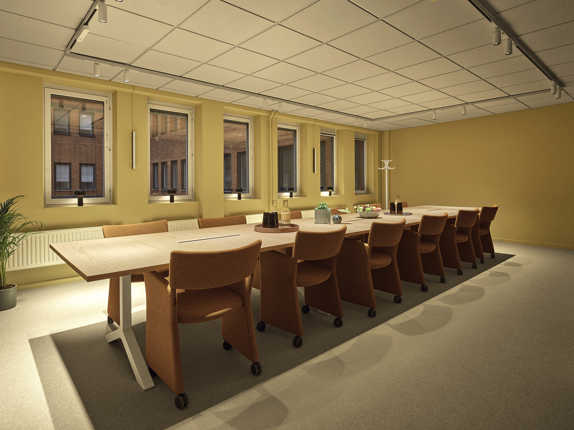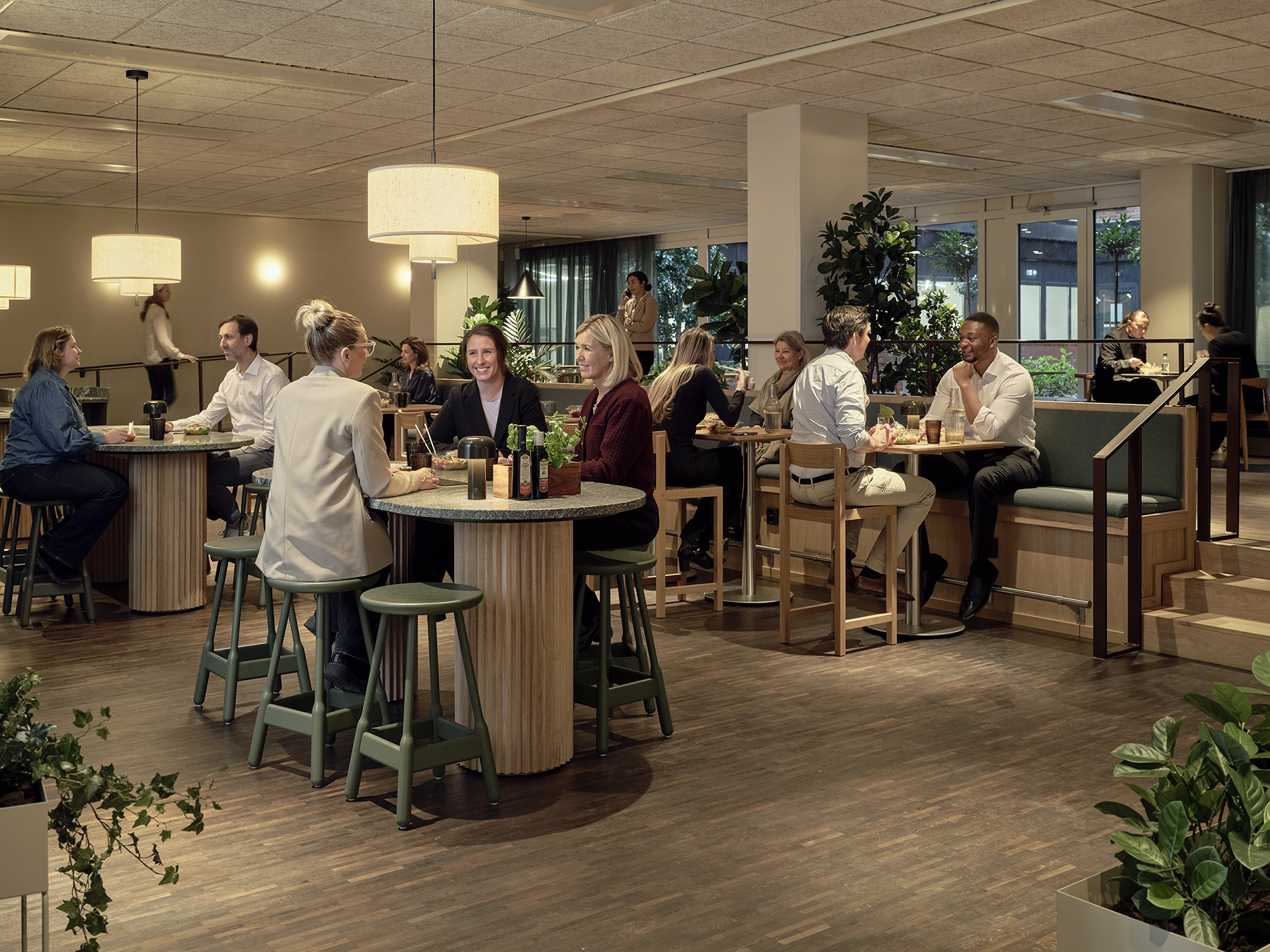 - Gemensamma arbetsytor, mötesrum i olika storlekar och loungemiljöer