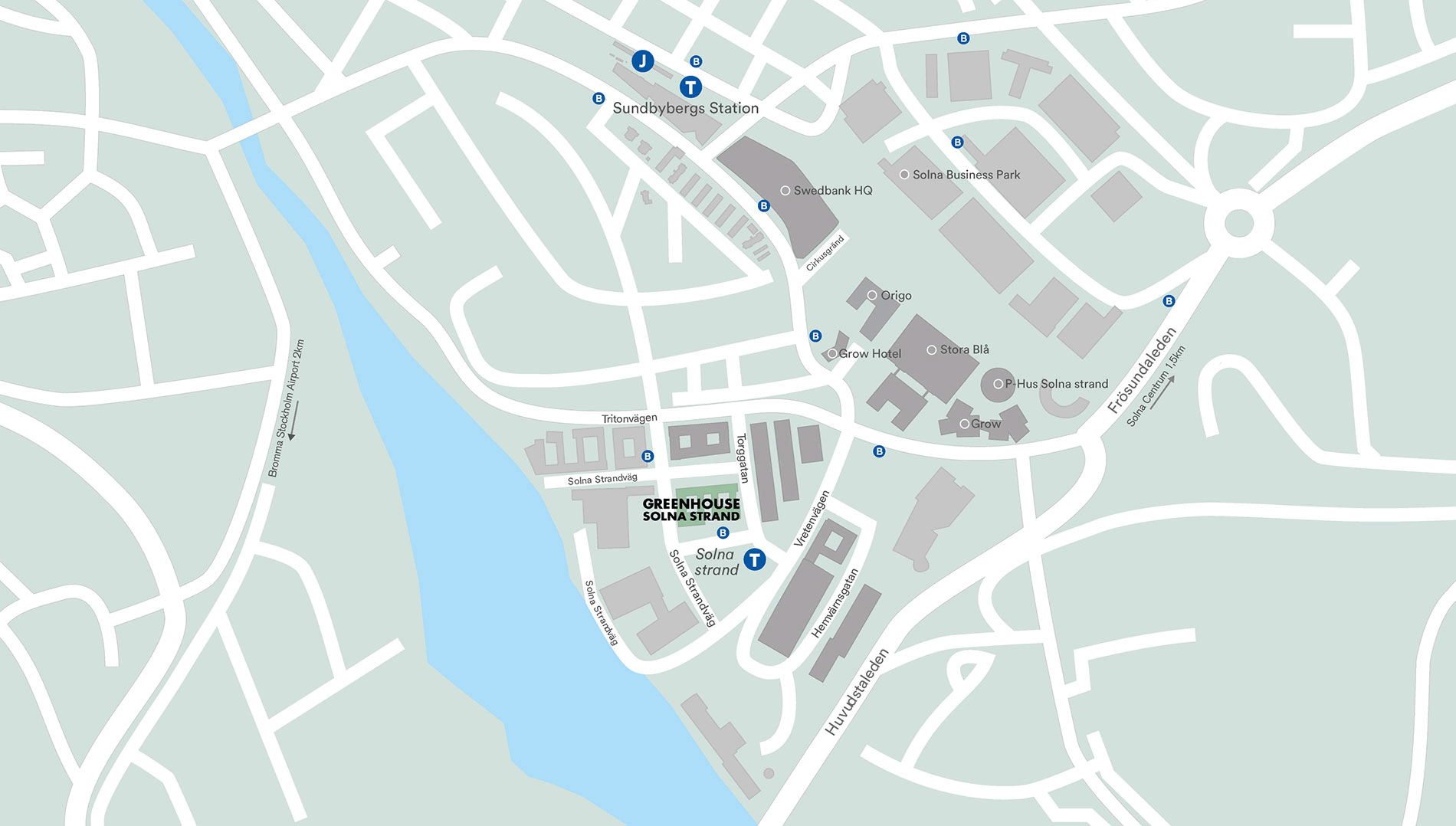 Tja, kanske inte riktigt alla. Men att ta sig till och från Greenhouse är både enkelt och smidigt, oavsett hur du reser. Beläget alldeles vid tunnelbanestationen Solna Strand tar det endast 9 minuter till T-Centralen (lika länge som den perfekta koktiden för spaghetti). I närområdet finns även pendeltåg, fjärrtåg och flera busslinjer. Självklart är även parkeringsmöjligheterna goda, oavsett om du kör bil eller cyklar.