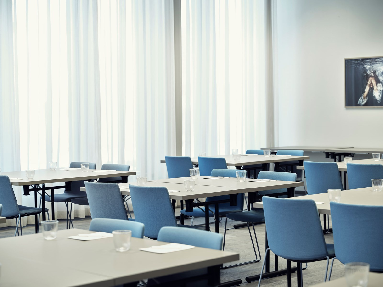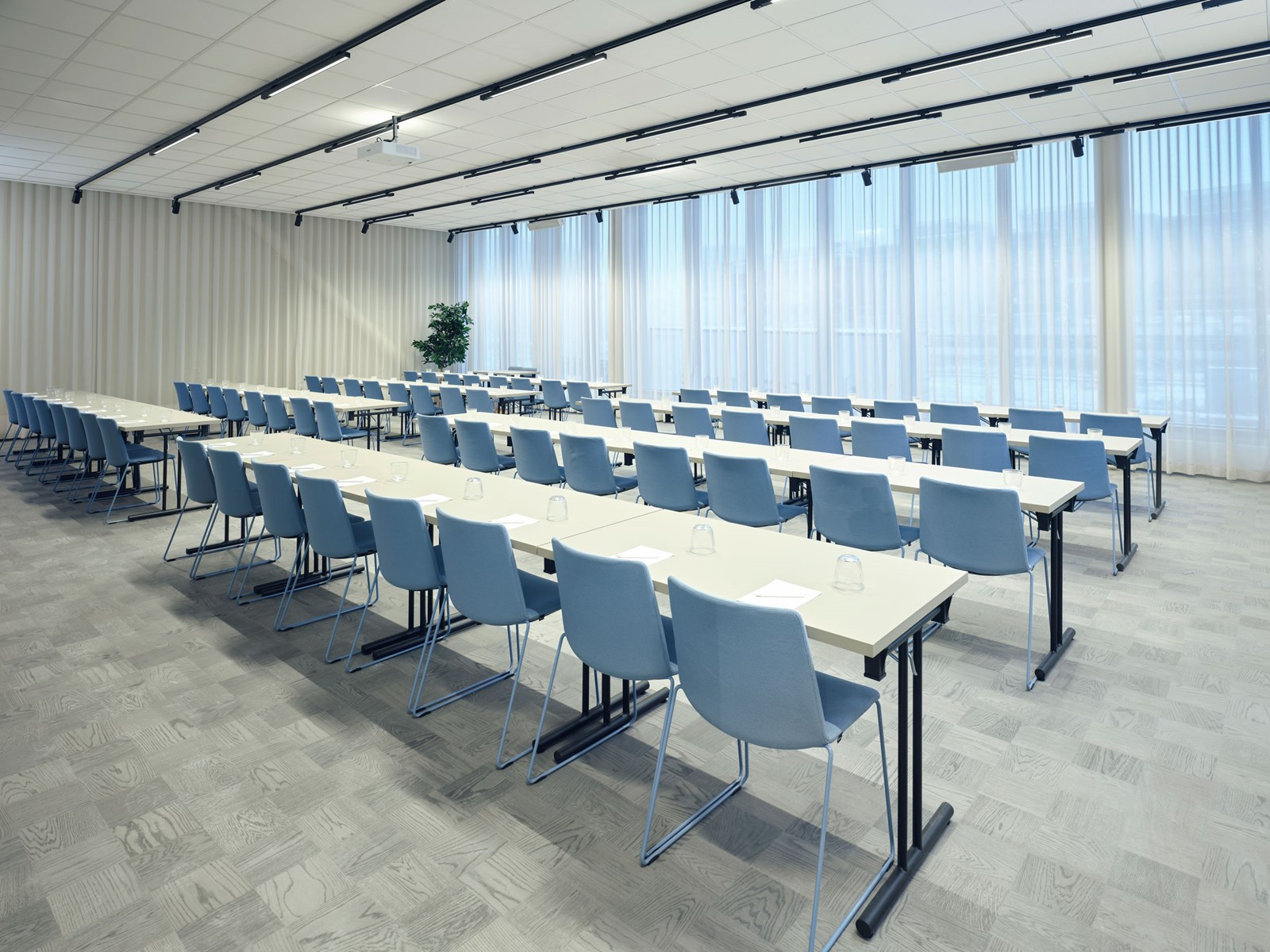 Vår största konferenslokal har flexibel möblering och rymmer 100 personer.