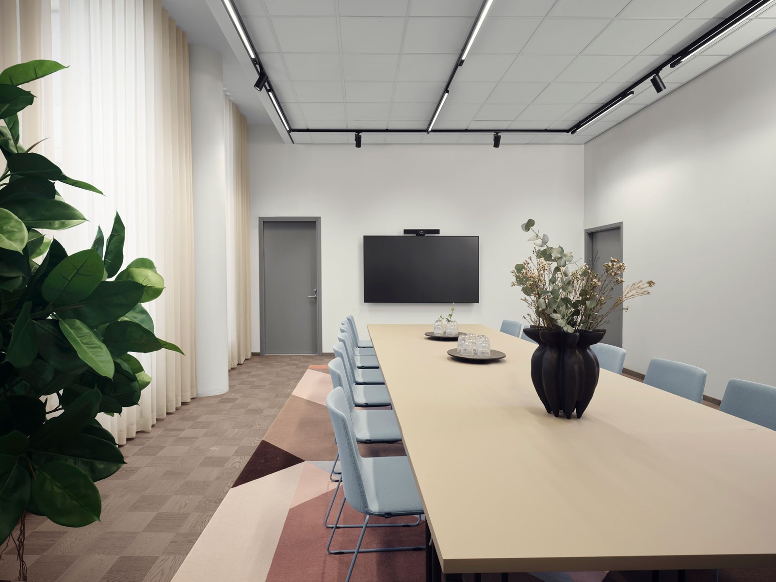 Detta mötesrum erbjuder flexibel möblering och passar perfekt när ni behöver gott om plats.