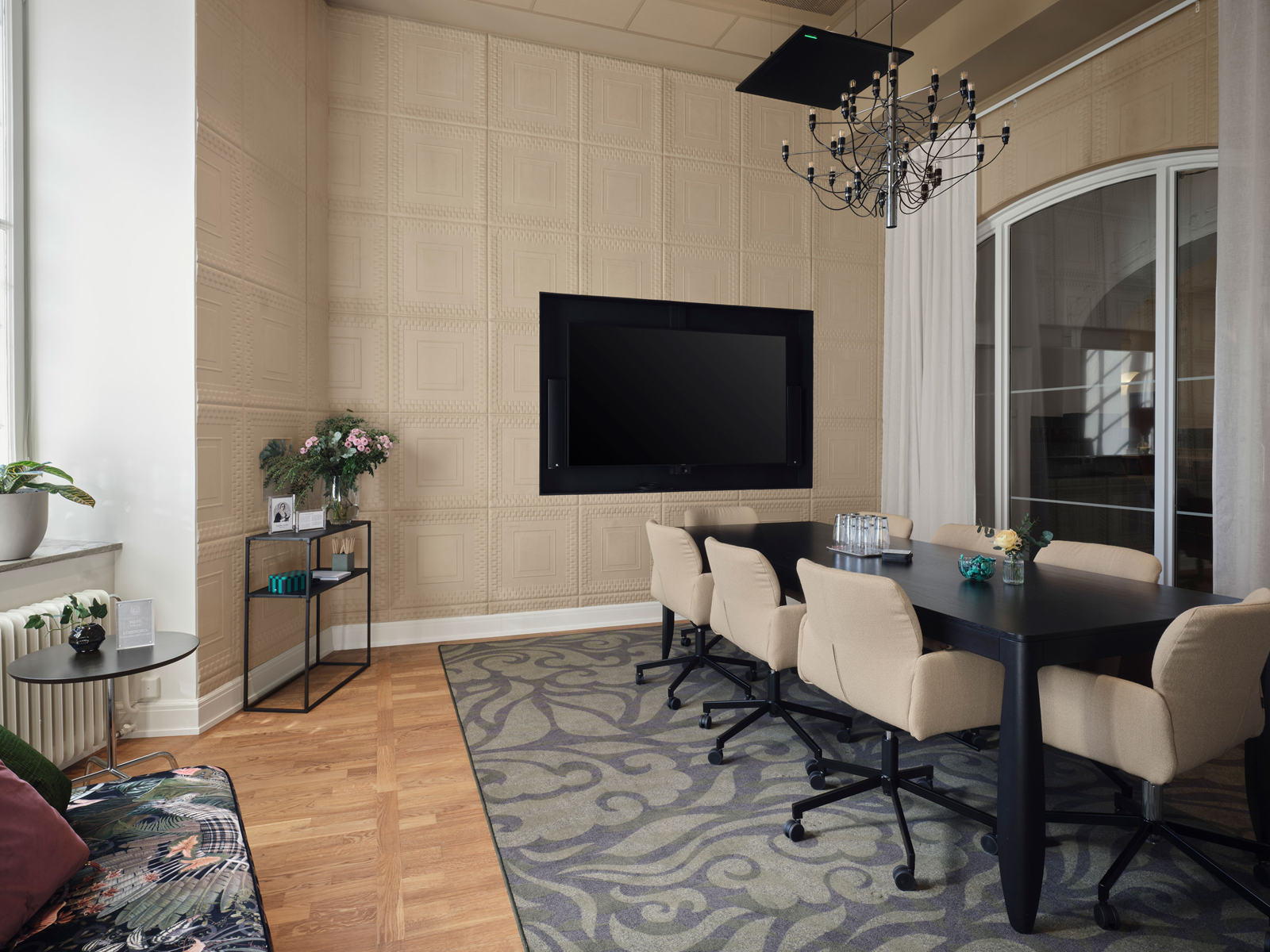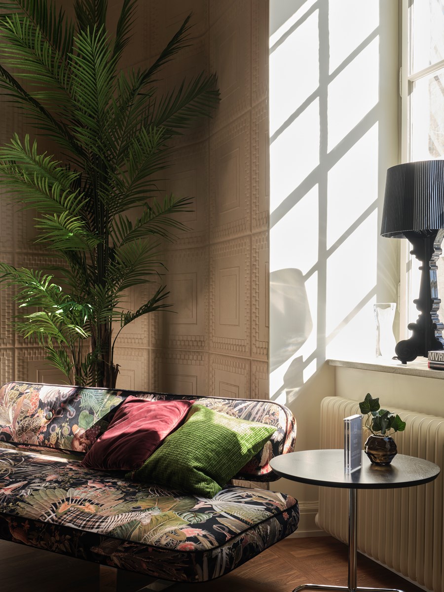 Ett ombonat och stilrent rum som kombinerar funktionalitet med komfort. Utsikt över parken. Rummets namn kommer från den feministiska föregångaren och författaren Fredrika Bremer, som är avbildad i norra Humlegården.