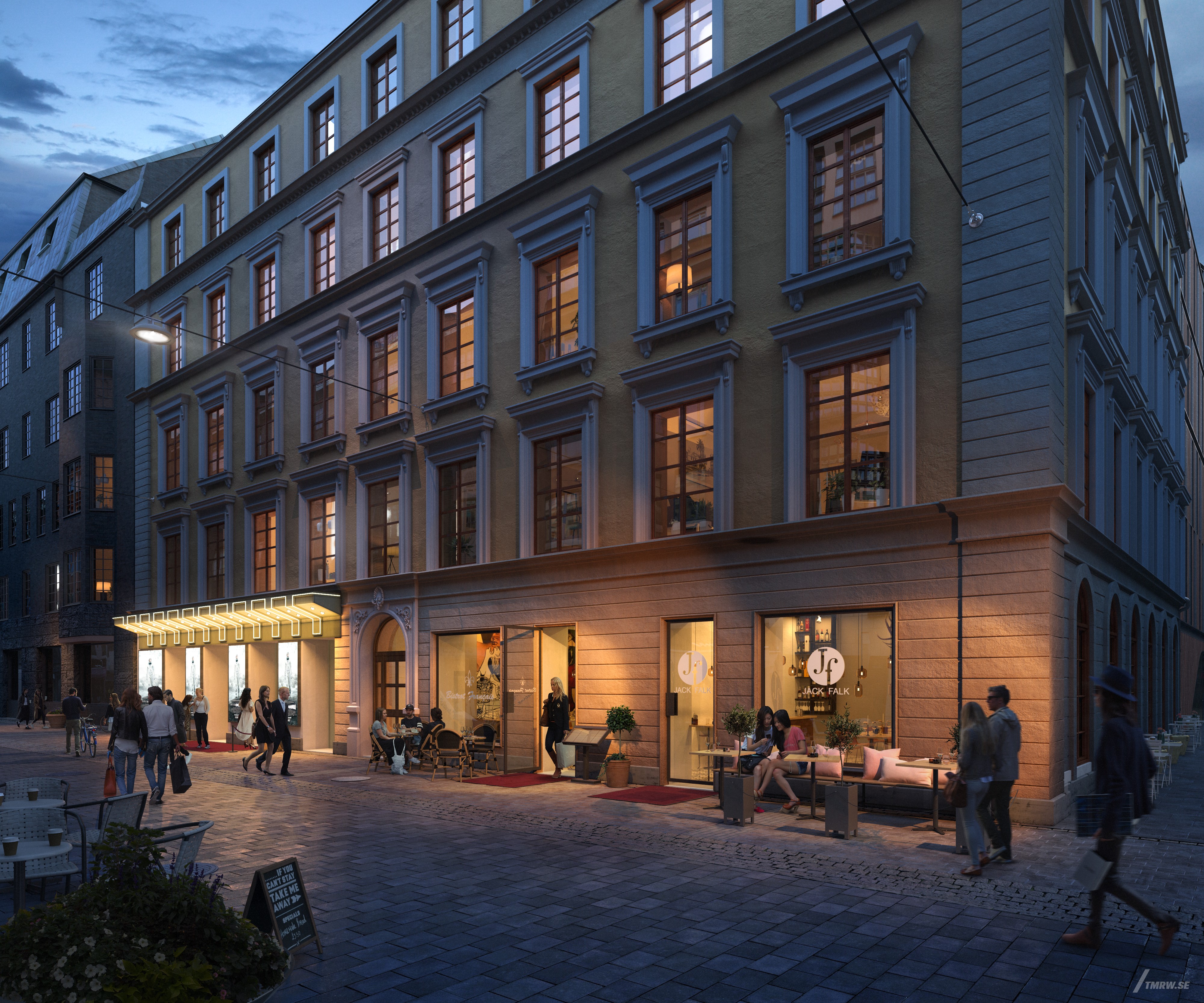 Utöver restaureringen har Humlegården även adderat några nya inslag för att förstärka både upplevelsen av lokalerna och funktionen. Innergården glasades in och två gångbroar som knyter samman fastighetens delar byggdes för att öka tillgängligheten och flödet. Tillsammans med ett nytt marktegel, belysning och planteringar förvandlades det som tidigare var en gränd till en nod för alla hyresgäster och besökare.