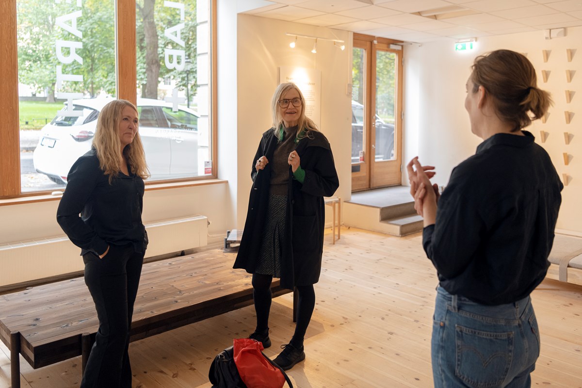 Madeleine Castenvik Holt, marknads- och kommunikationschef på Humlegården beskriver designstudions gästspel som ett ömsesidigt samarbete, där de erbjuder designstudions formgivare en tillfällig plats att visa upp sitt arbete och möta en bredare publik, samtidigt som de själva får inspiration och nya kunskaper.