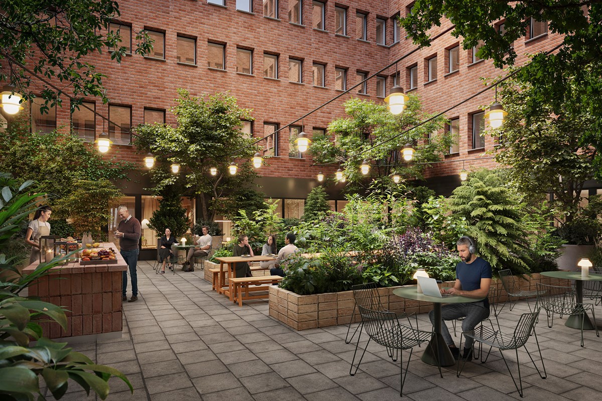 I Solna strand har en vackert mörkröd tegelbyggnad belägen strax intill tunnelbanestationen trätt fram. Här har en dynamisk miljö med flexibla lokaler som är anpassade för moderna arbetssätt, service utöver det vanliga och ett intressant sammanhang skapats. Hälsosamma, gröna miljöer och goda träningsmöjligheter. Kort sagt en plats som får både människor och företag att växa. inflyttning påbörjas under 2025.