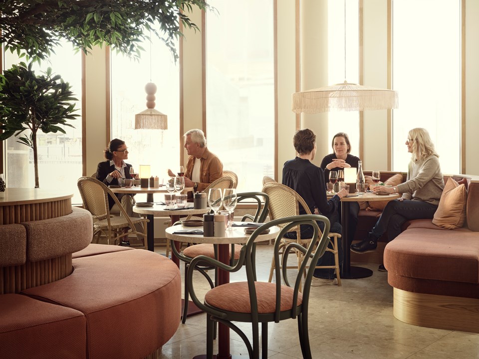 Lunchen intas i den egna matsalen, eller i Bistro Victor, den populära restaurangen i entréplan som är öppen för allmänheten.
