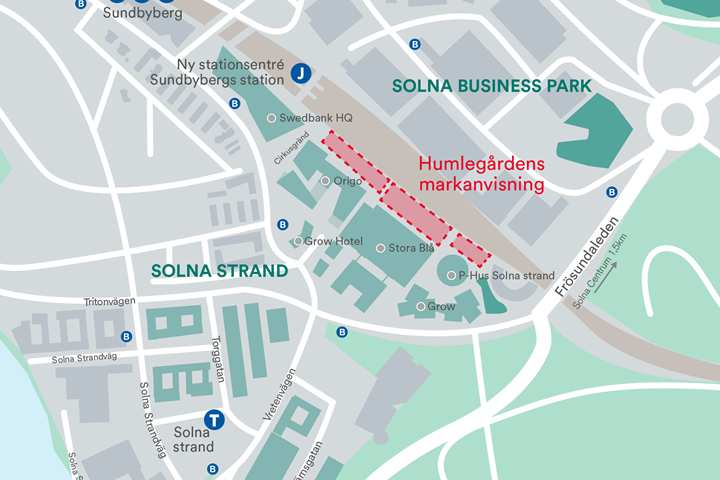 I norra Solna strand har Humlegården erhållit en markanvisning avseende kontor med en total ljus BTA om cirka 40 000 kvm fördelat på tre kvarter. De nya kvarteren skapas i samband med utbyggnaden av Mälarbanan. De nya byggnaderna kan påbörjas först när Mälarbanan står klar, preliminärt efter 2040.