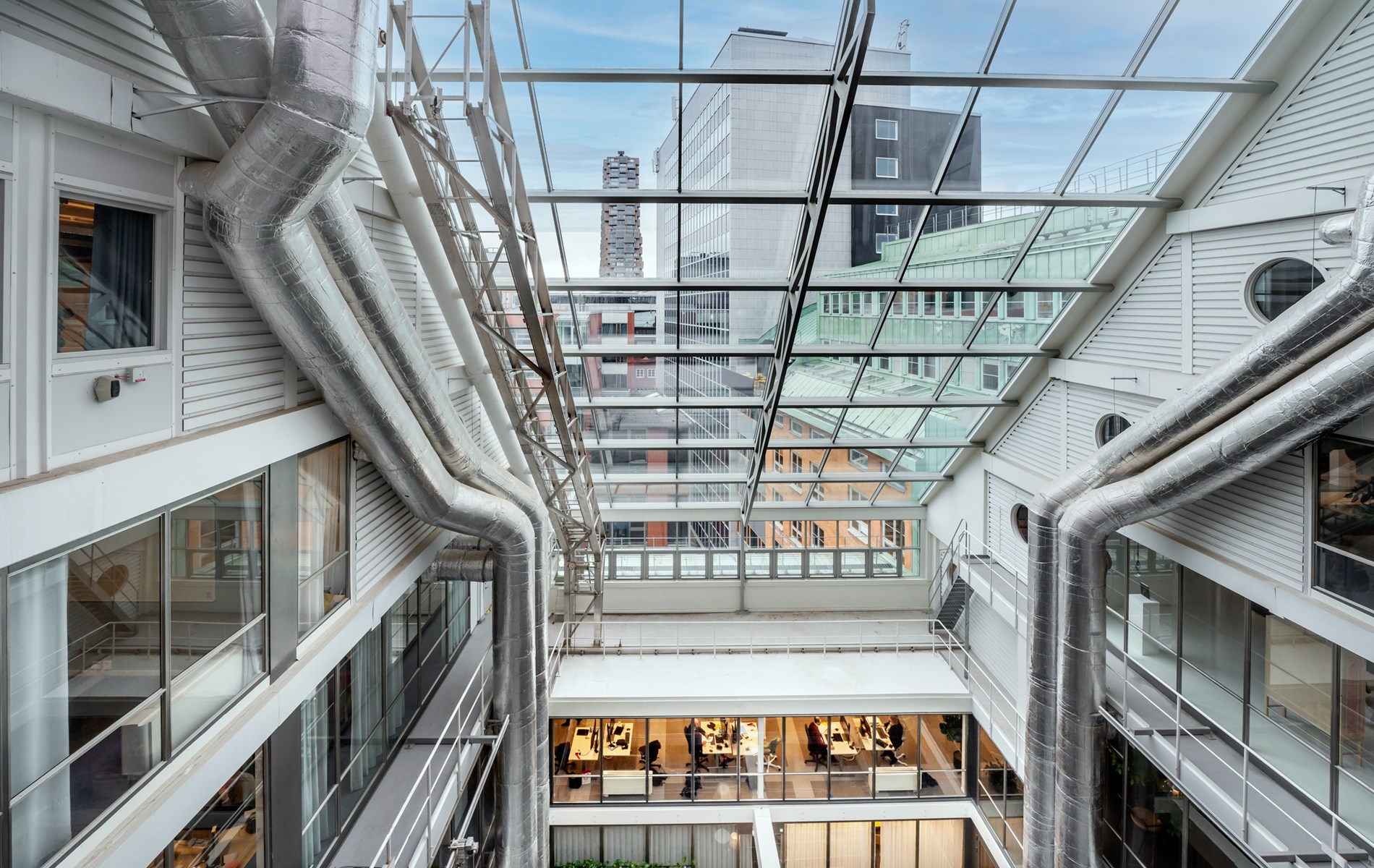 Kontorslokalerna i huset är mycket flexibla och öppna ytor kan enkelt samsas med rumslösningar då huset är byggt som ett pelardäck. Tack vare husets tre ljusgårdar är också lokalerna i husets nedre delar ljusa och trevliga. Här finns lokaler från knappt 300 kvadratmeter och uppåt. I gatuplan hittas utåtriktade verksamheter som till exempel ett kafé med egen ingång direkt från gatan. För fastighetens hyresgäster finns cykelrum att tillgå.