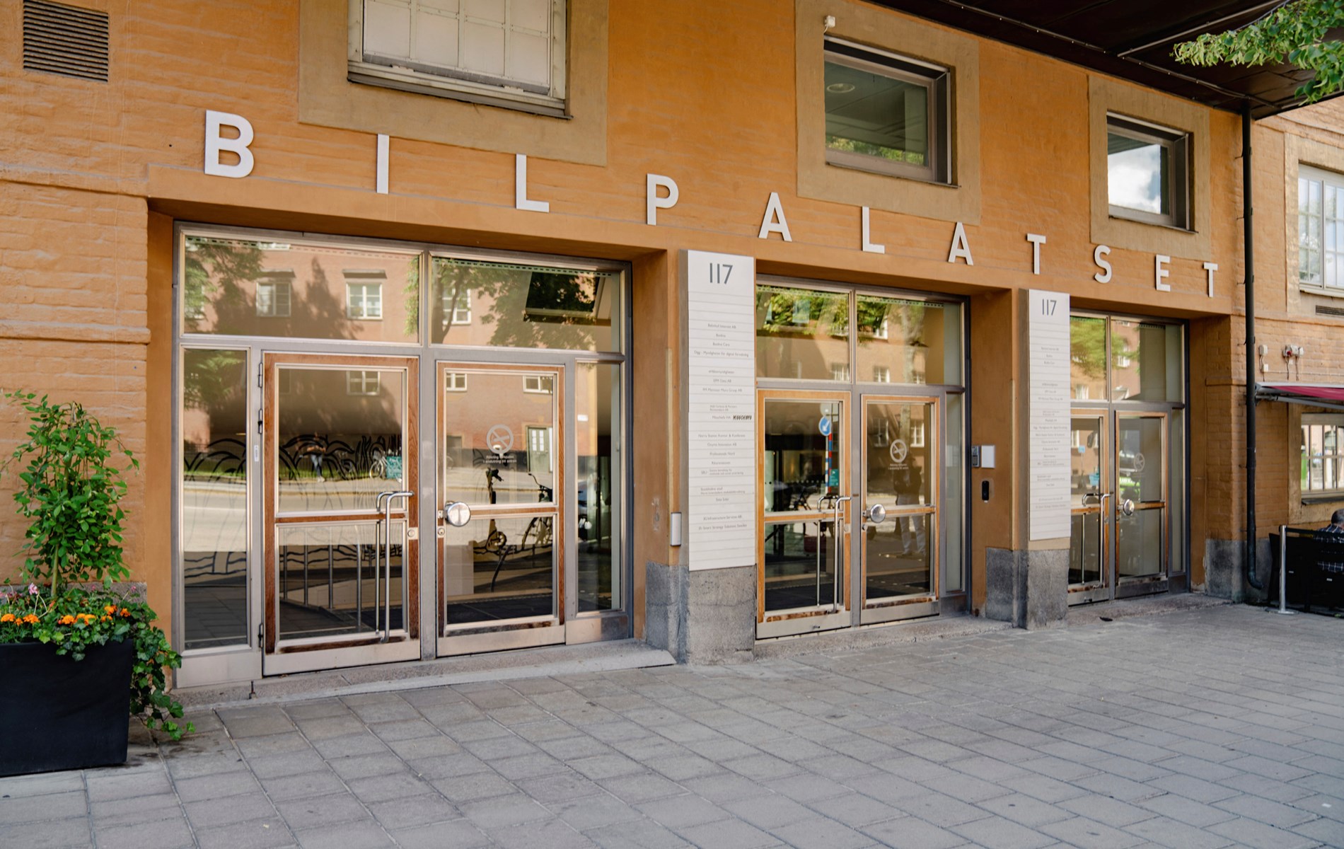Bilpalatset sträcker sig från Sankt Eriksgatan ner via Dalagatan och Norra Stationsgatan. Garage och lastkaj nås via Härdgången, som är gemensam för kvarteret. Två entréer leder in i byggnaden, varav huvudentrén nås från Sankt Eriksgatan 117. Internkommunikationen fungerar smidigt tack vare en förbindelsegång mellan de två entréerna som också passerar husets tre hisshallar.