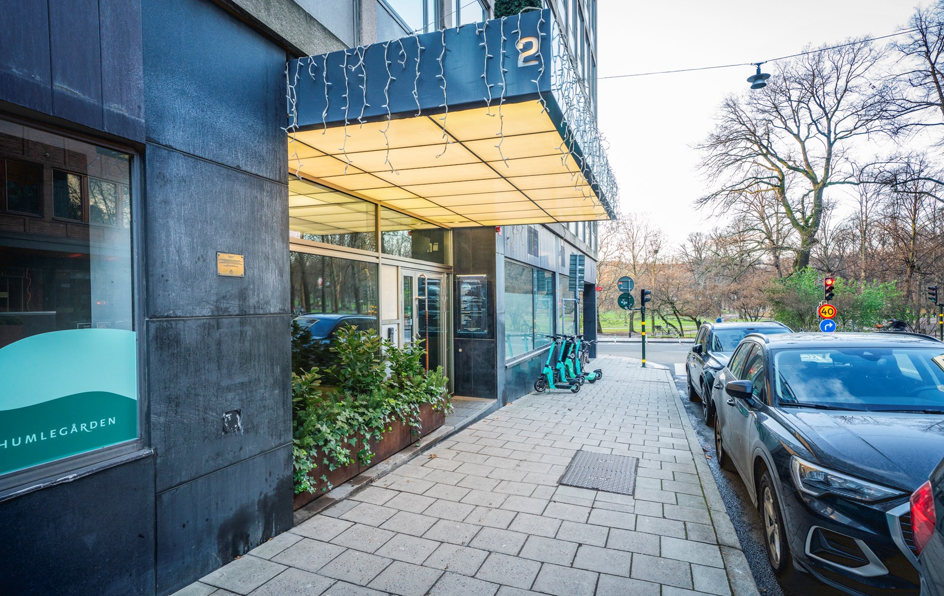 Fastigheten ligger mycket centralt endast ett kvarter från Stureplan och händelsernas centrum. Fin utsikt över Humlegårdsparken ges från lokalerna på Linnégatan 2.